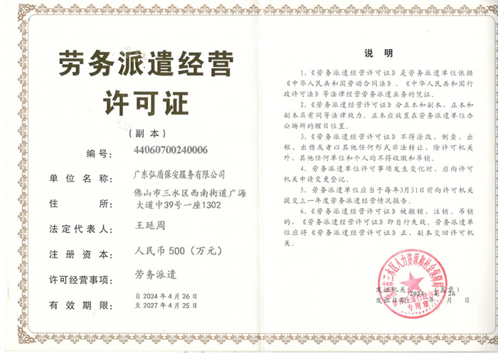 • 弘盾保安總公司營業(yè)執(zhí)照